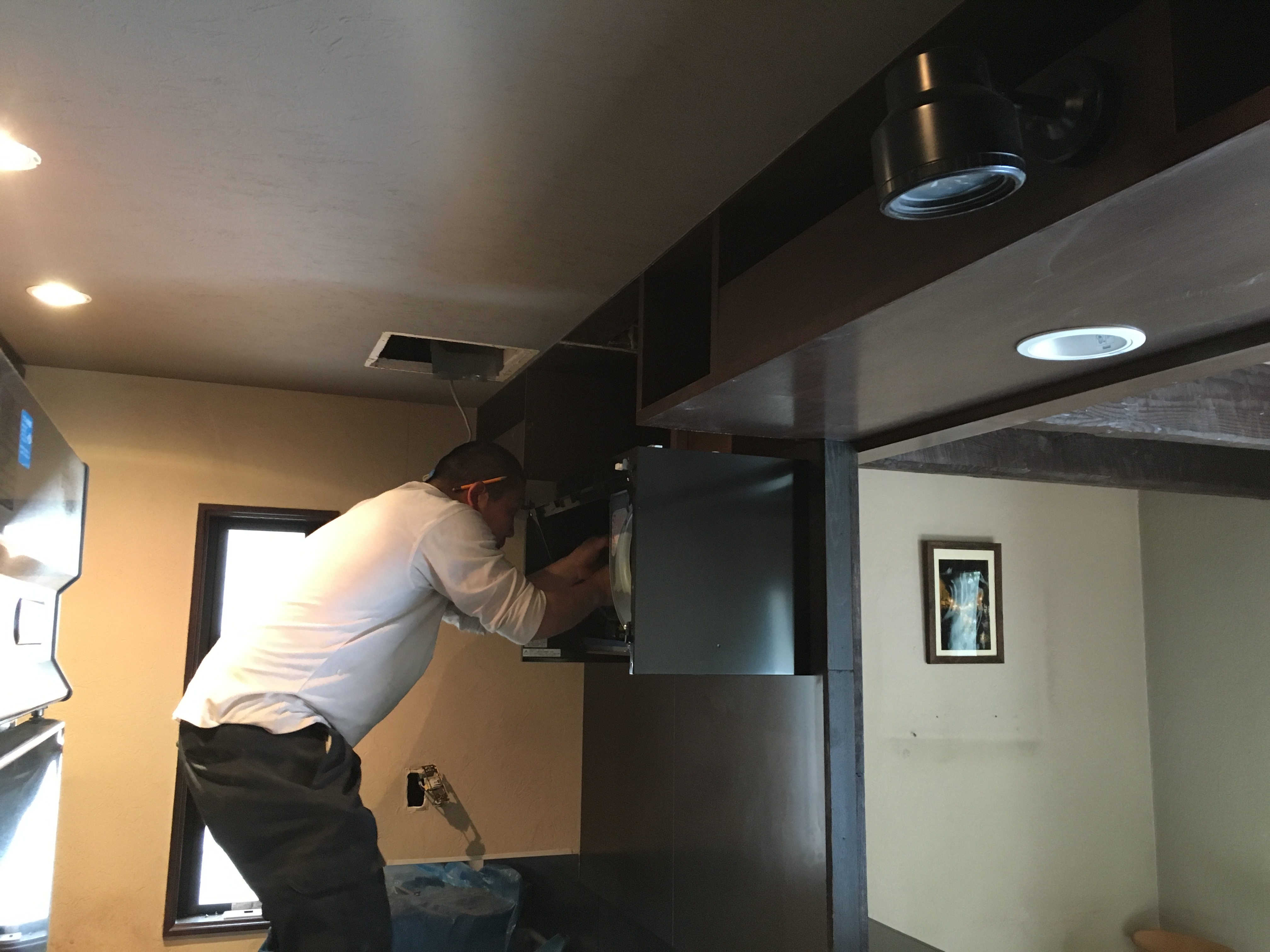 ↓ 解体が終わったら、レンジフードを取り付けていきます