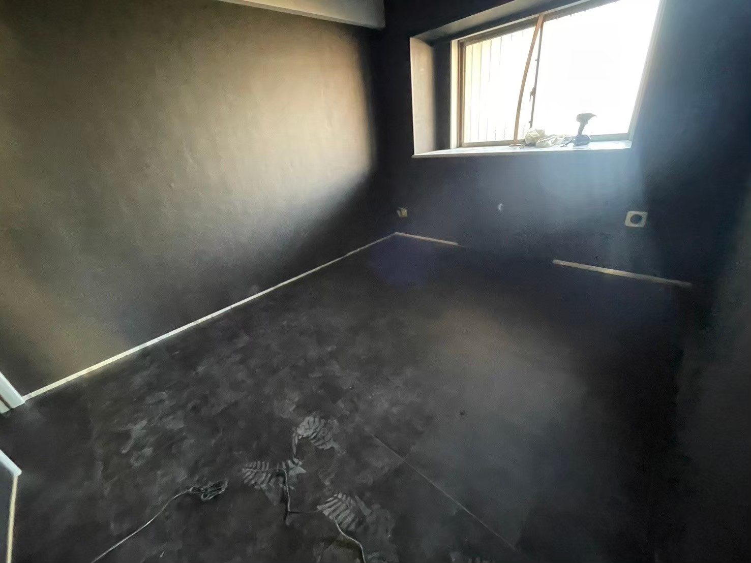 壁と同色の石目調フロアタイルでとても格好いいお部屋になりました!
