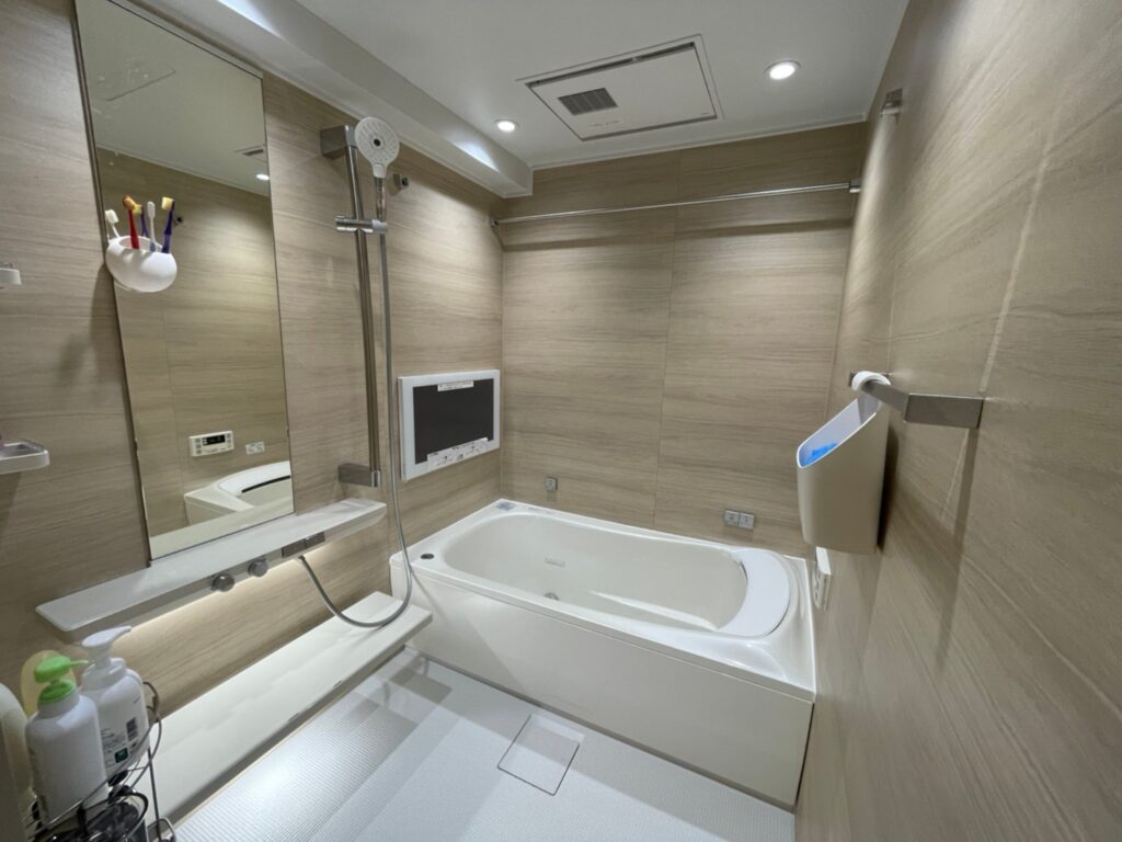 カウンターや棚のスペースを増やし、使いやすいユニットバスになりました!テレビも設置したことでお風呂時間が快適に!