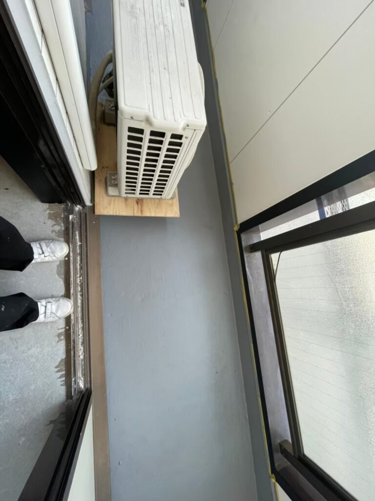 室外機が汚れてしまうので台に乗せて守っています。