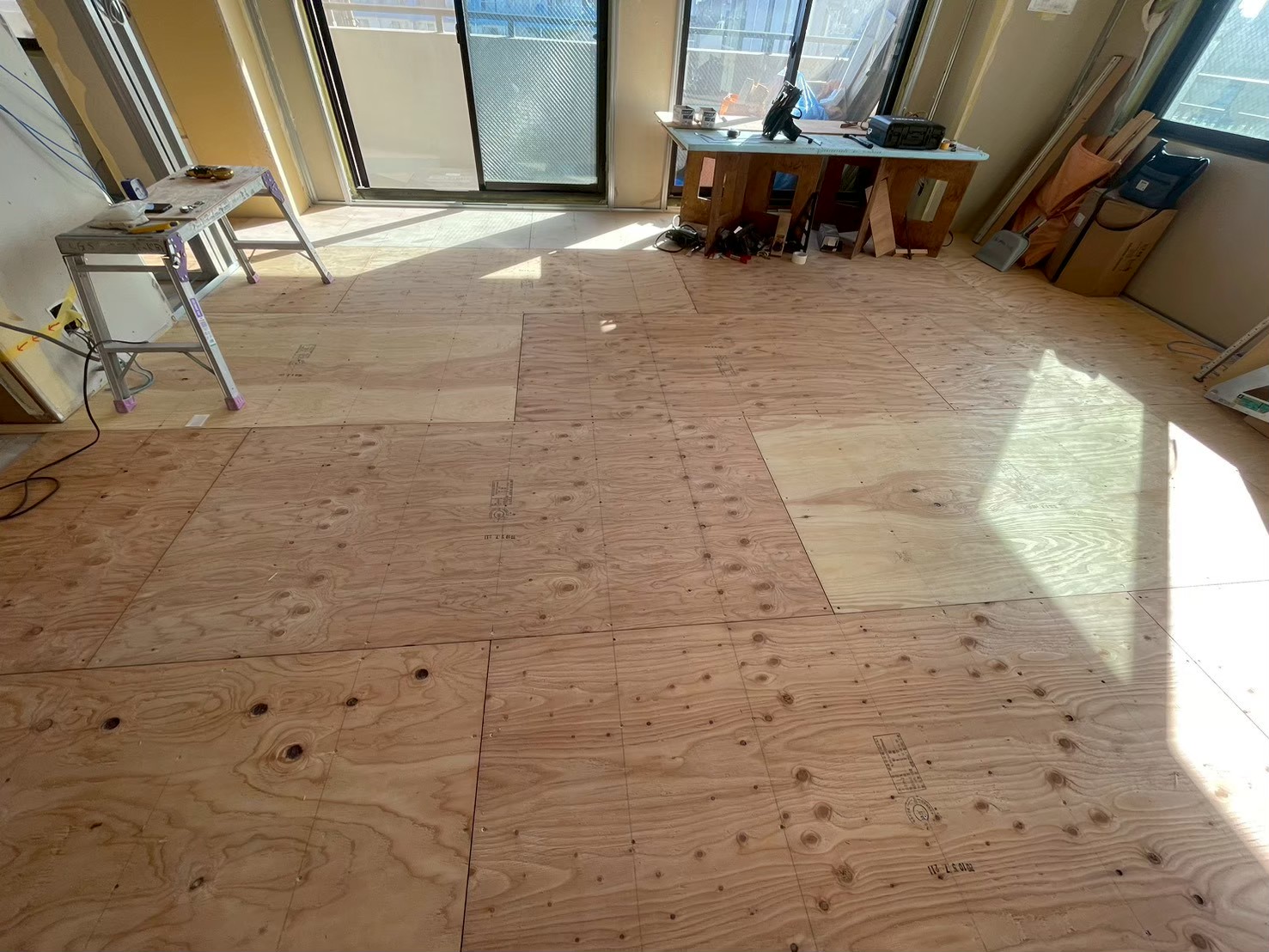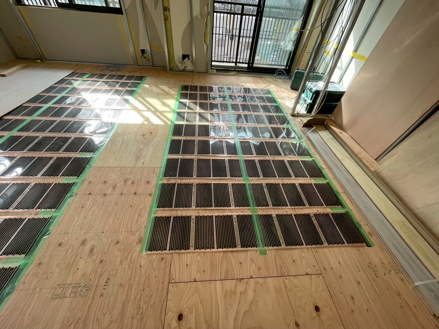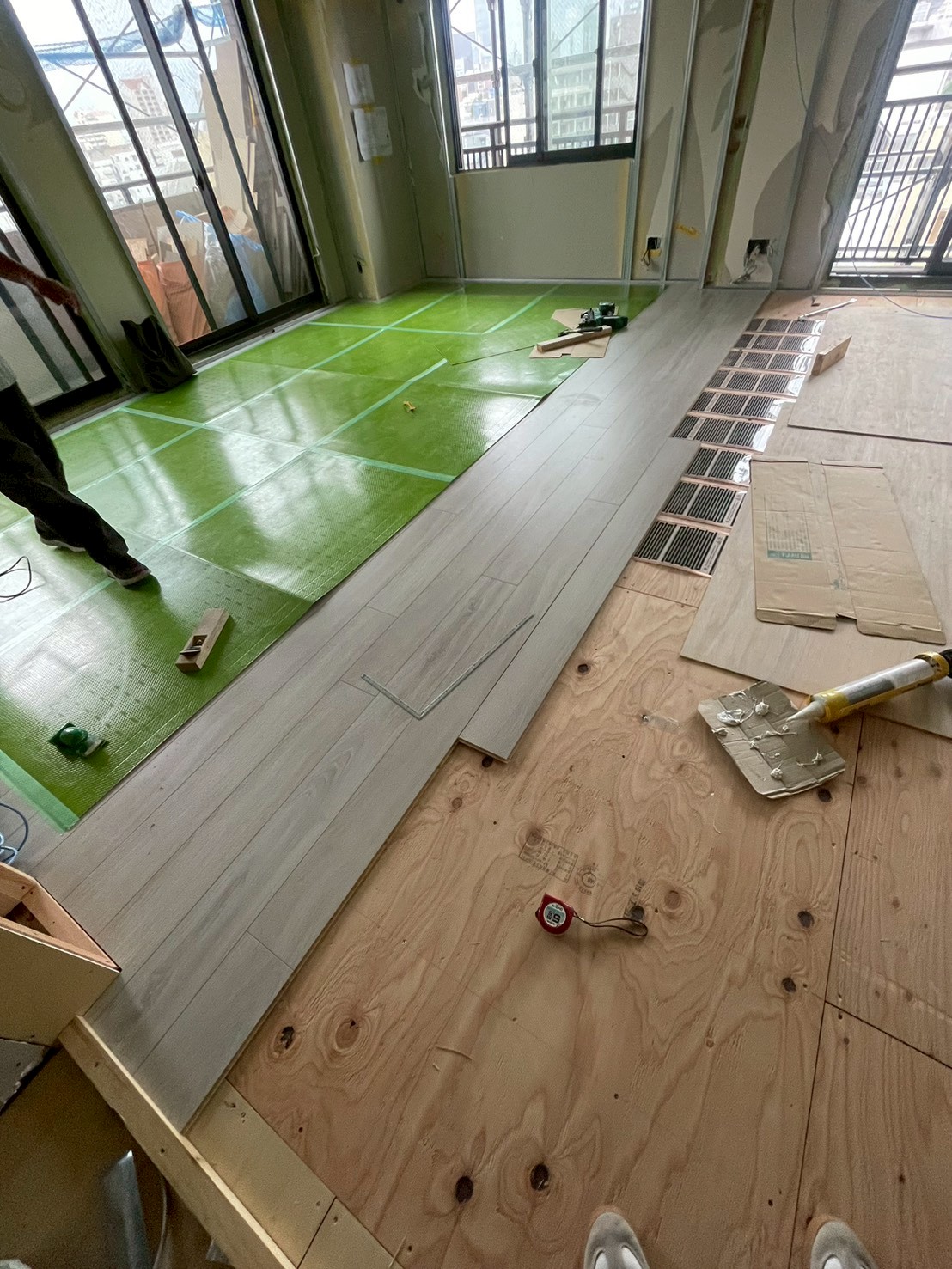 床暖房の上にフローリングを貼って床の完成です。
