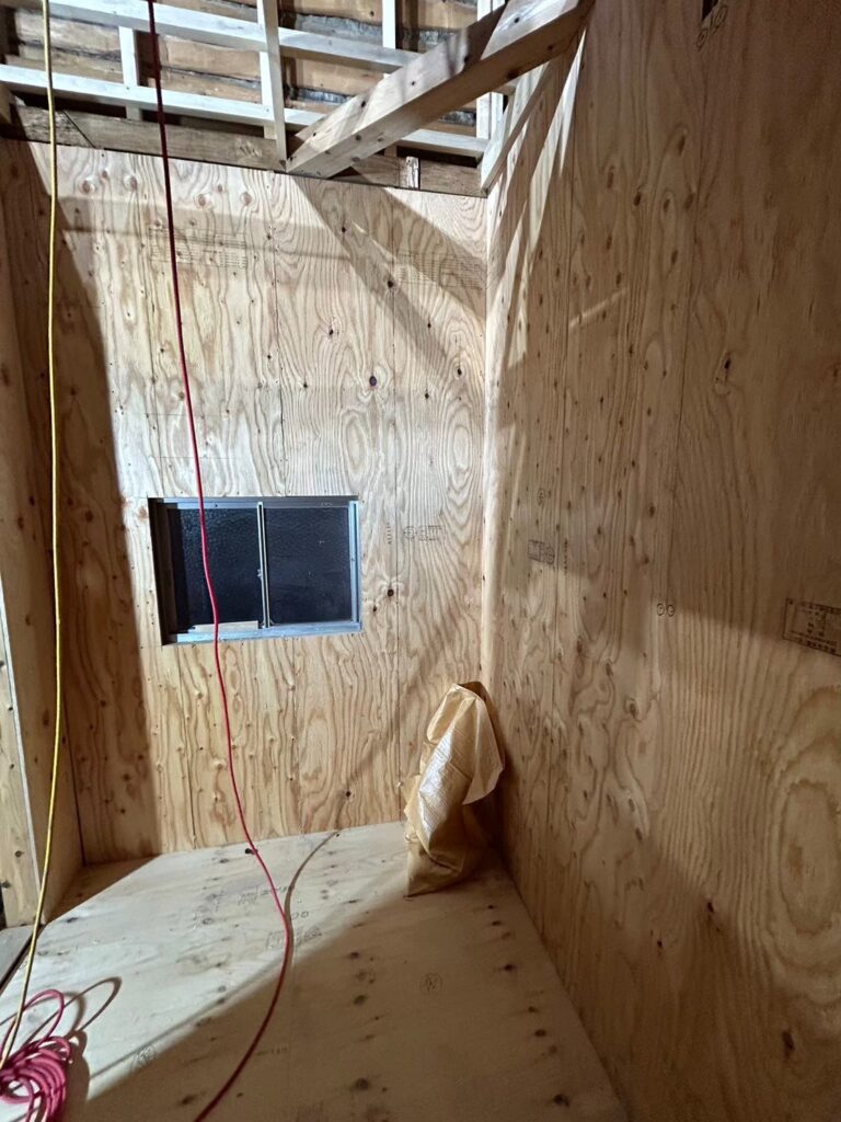 強度が必要な箇所は壁にもベニヤを貼ります。