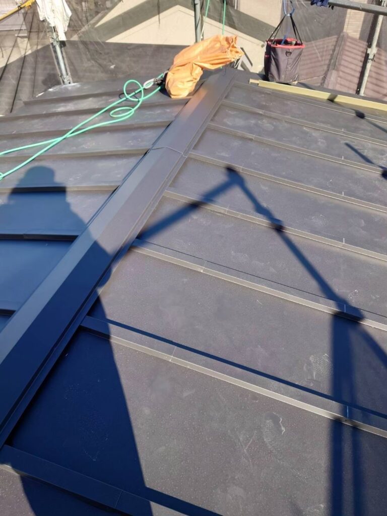 ルーフィングの上から新しい屋根材を貼っていきます。