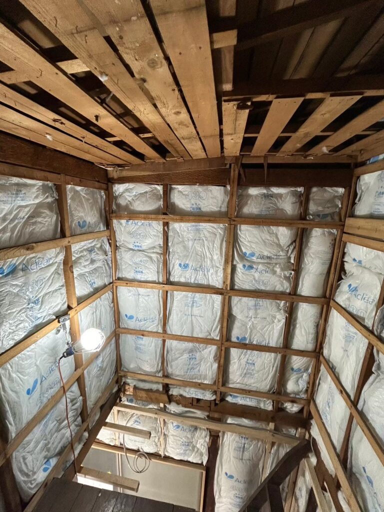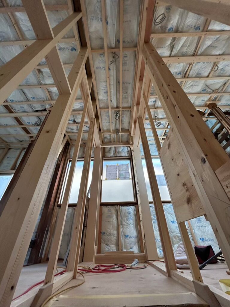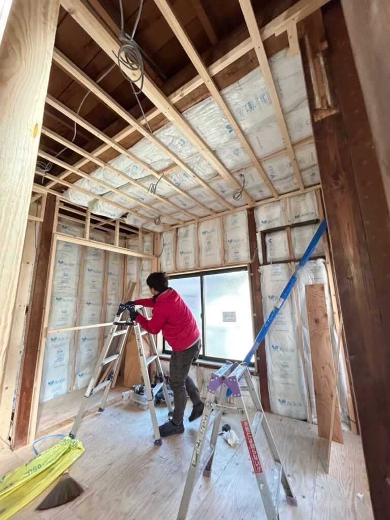 これまでに天井・壁・床の下地や間仕切り壁、階段交換などが完了しています。