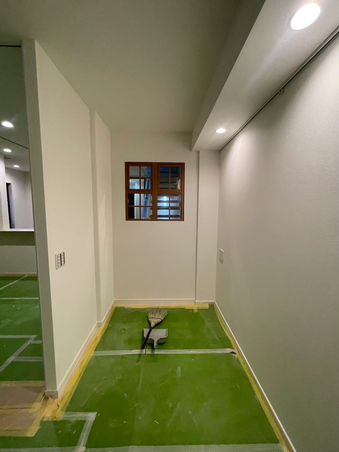 新規の壁は少ないですが、全体のクロスを貼り替えていきます。