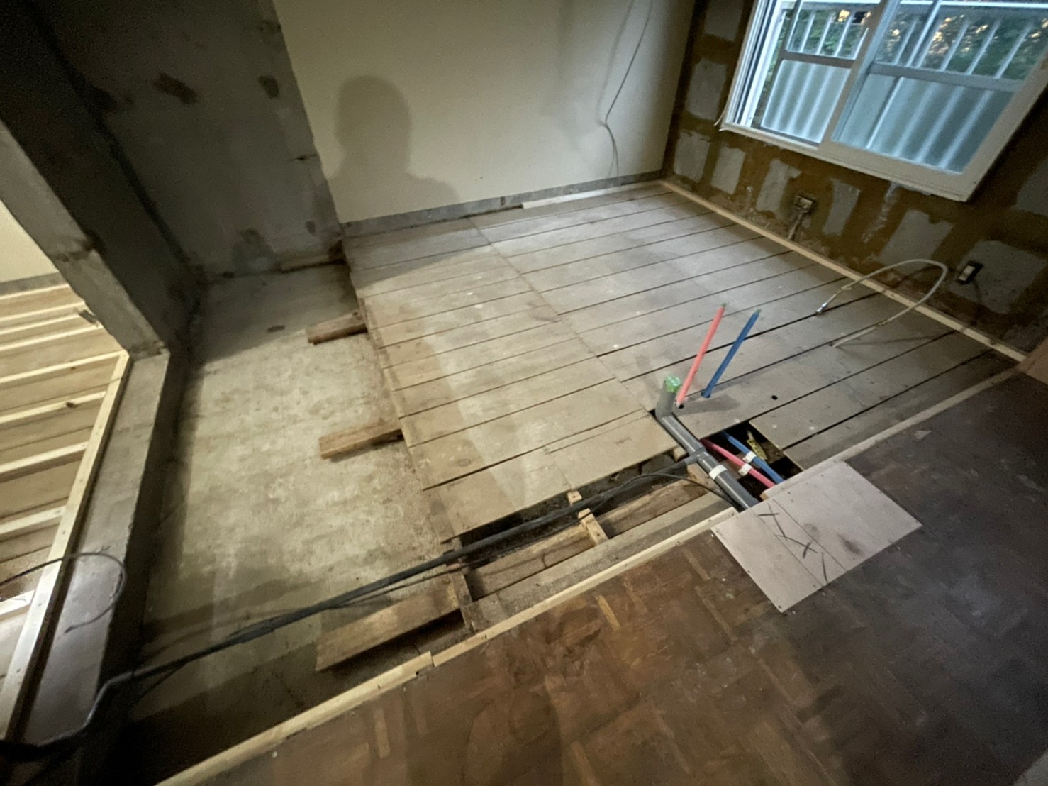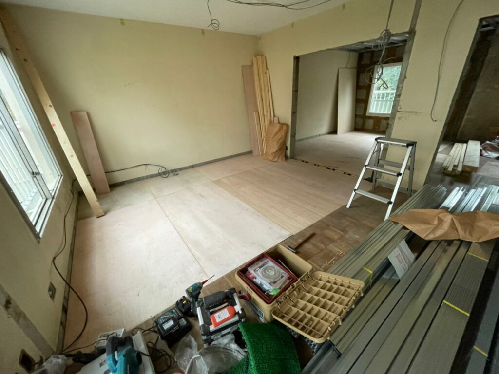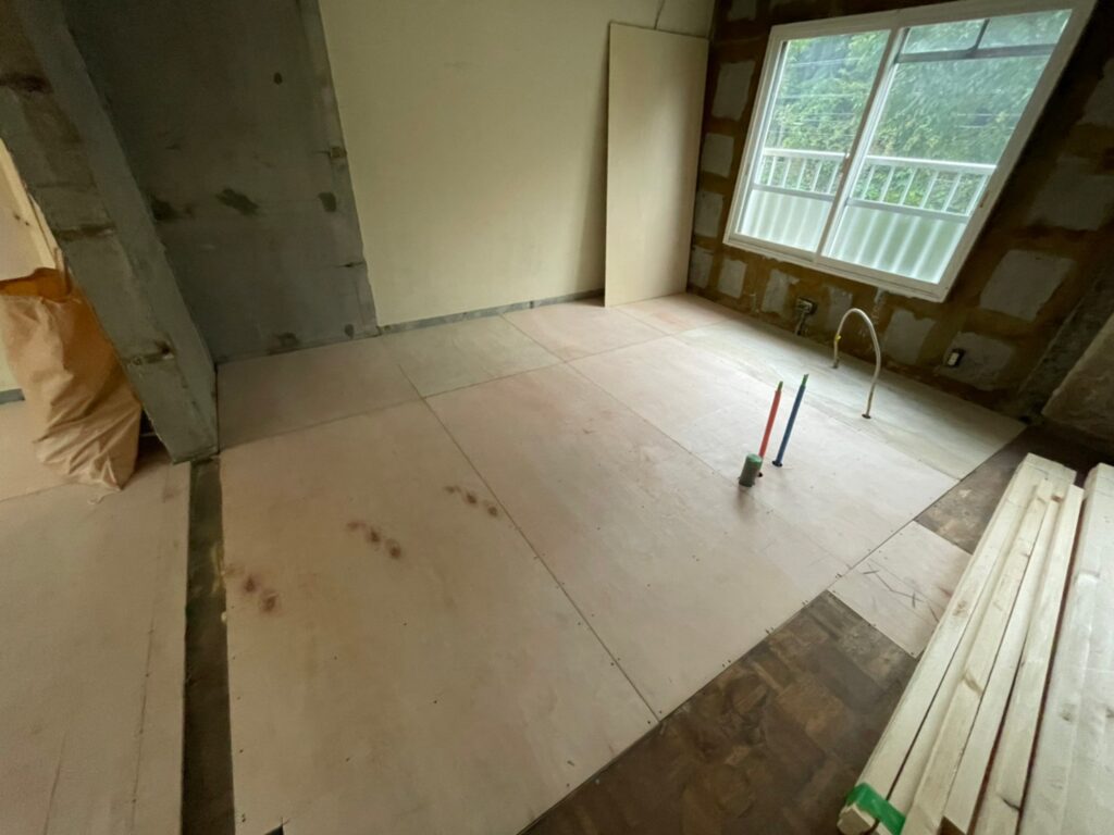 配管工事が終わったので、床をフラットにするため置床の工事をしていきます。